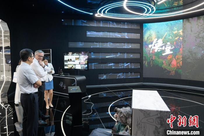 7月14日,外籍嘉宾在杭州未来科技城城市展馆了解游戏《黑神话:悟空》。吴君毅 摄